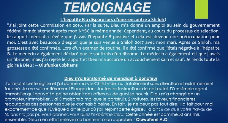 Dites nous brièvement ce que Dieu a fait pour vous et envoyez le par mail